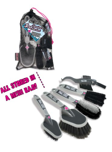 This package features all five Muc-Off brushes in a handy mesh bag. Package includes claw brush, soft washing brush, two prong brush, detailing brush and the wheel and component brush. All brushes feature high quality construction. The bag allows easy storage and drying of the brushes.